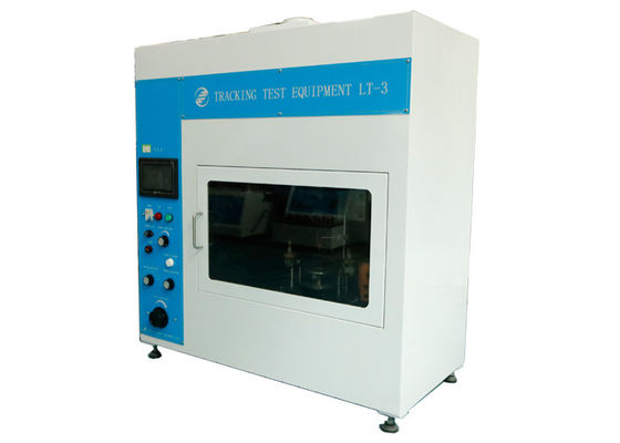 The test machine is designed and manufactured according to the requirements of the relevant standards, such as IEC60695. It is used for determination of the relative resistance to tracking performance that solid electrical insulating material under the action of an electric field, when the surface exposed to water containing impurities.